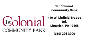 The 1st Colonial Community Bank is located at: 440 West Linfield-Trappe Road, Limerick, PA 19465 Call 610-226-3000 email jcascino@1stcolonial.com or visit their web site at: www.1stcolonial.com